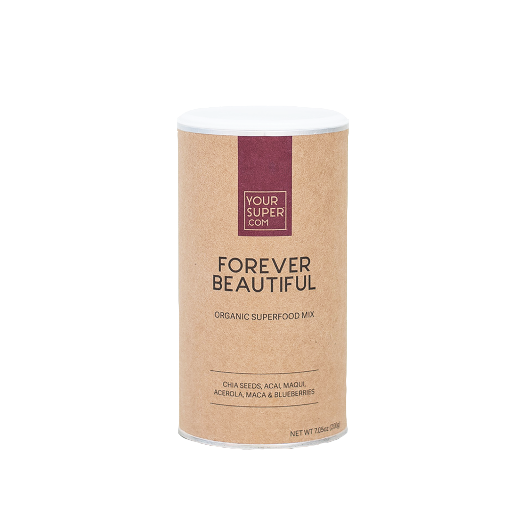 Forever Beautiful superfood powder is a blend of nutrient-dense foods high in antioxidants (ORAC 19750 μmol TE) and micronutrients like Vitamin A, C, E, Magnesium, Calcium and Iron.
