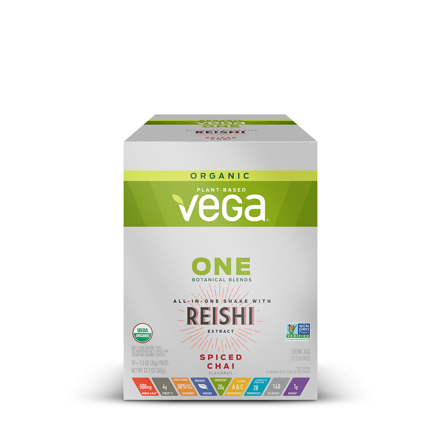 All the plant-based nutrition of Vega One®, now with premium ingredients curated for the ability to empower wellness. Choose between Reishi in Spiced Chai flavor and Ashwagandha in Turmeric Coconut flavor.